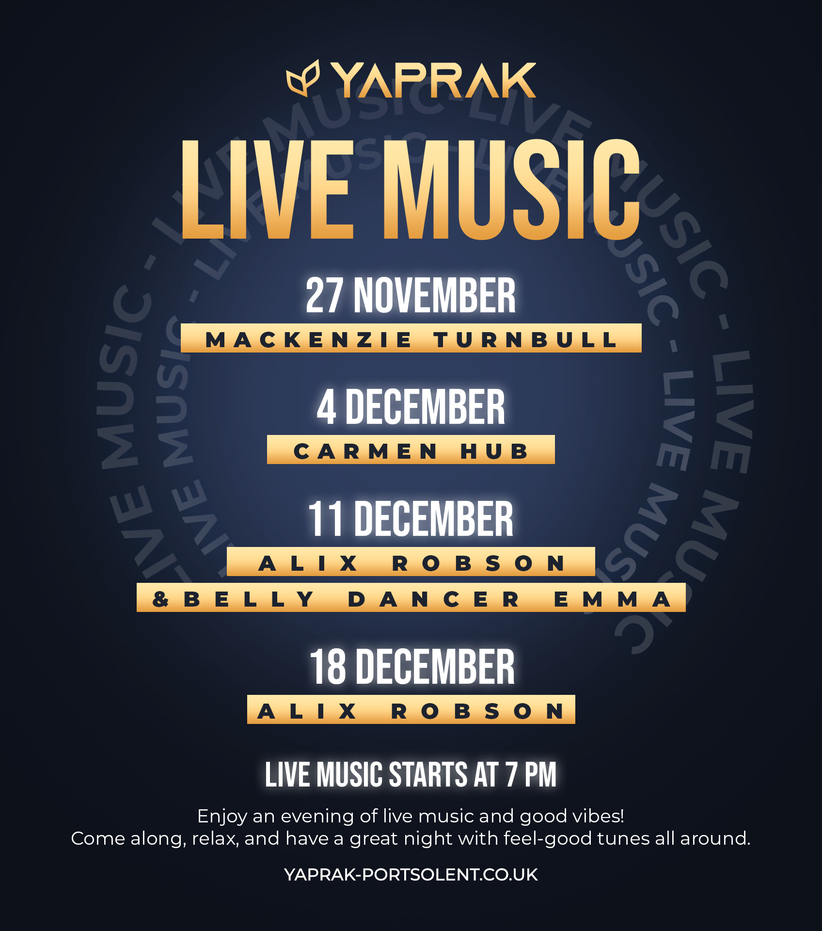 Jump in 2026 with an unforgettable night at Yaprak Port Solent! Join us for a dazzling New Year’s Eve celebration filled with golden glamour, amazing belly-dance performance and a festive atmosphere by the waterfront.